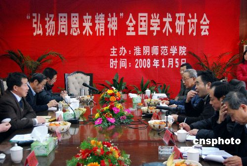 1月5日,北京、上海、內(nèi)蒙古、陜西等地的30余名周恩來研究專家齊聚江蘇淮陰師范學院,圍繞“宏揚周恩來精神”,討論周恩來精神對中華民族精神的升華及其當代價值,紀念周恩來誕辰110周年。中新社發(fā) 方東旭 攝