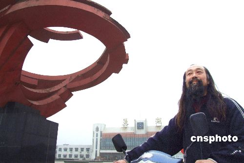1月10日,創(chuàng)兩項(xiàng)吉尼斯世界紀(jì)錄——“殘疾人騎自行車穿越羅布泊之最”和“殘疾人騎自行車游中國之最”的殘疾人劉郁寶單車來到安徽巢湖市。他已行經(jīng)全國近千座城市,行程六萬公里。他此次來巢湖的目的是,宣傳祖國和平統(tǒng)一 ,呼吁全社會關(guān)心和支持殘疾人事業(yè),并為建立“中華史料庫”搜集史料。中新社發(fā) 張發(fā)平 攝