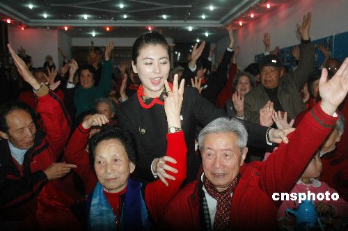 2008年1月24日,位于?谑械暮D峡鞓(lè)夕陽(yáng)敬老園舉辦“敬老愛(ài)老迎春聯(lián)歡晚會(huì)”,來(lái)自全國(guó)各地在該園休閑過(guò)冬的150多名“候鳥(niǎo)老人”與海南航空的20多名乘務(wù)員歡聚一堂,互送新年禮物和互動(dòng)表演文藝節(jié)目,共同歡度了一個(gè)難忘的夜晚。中新社發(fā) 善平 攝