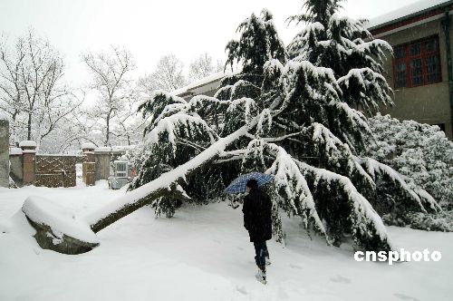 圖:安徽巢湖罕見暴雪壓倒青松