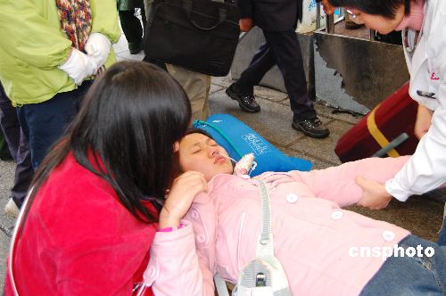 京廣鐵路湖南段從25日起出現(xiàn)大面積旅客列車(chē)晚點(diǎn),到28日仍未恢復(fù)正常秩序,仍有七萬(wàn)多名旅客被迫滯留在廣州火車(chē)站。由于長(zhǎng)時(shí)間候車(chē),有的旅客在現(xiàn)場(chǎng)暈倒,醫(yī)護(hù)人員進(jìn)行了緊急救治。中新社發(fā) 柯小軍 攝