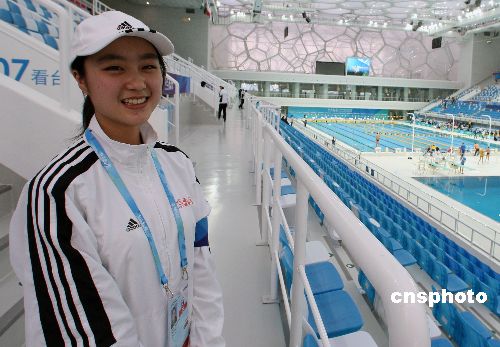 1月29日北京天寒地凍,剛剛完工的北京奧運(yùn)會(huì)游泳場(chǎng)館——國(guó)家游泳館(水立方)內(nèi)溫暖如春,主要由清華大學(xué)學(xué)生組成的數(shù)千名志愿者在靚麗柔美的游泳館“上崗”,迎接1月31日開(kāi)始的中國(guó)游泳公開(kāi)賽。中新社發(fā) 任晨鳴 攝