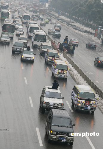 圖:長沙市民送別在雪災中犧牲的三位烈士
