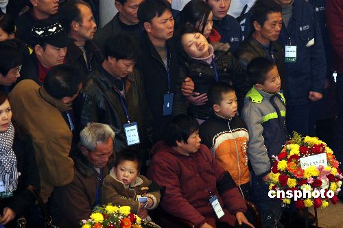 1月30日下午,為確保國家電網(wǎng)安全而獻出寶貴生命的湖南電力公司員工羅海文、羅長明、周景華三位烈士的追悼大會在長沙陽明山殯儀館舉行。1月末,湖南正遭遇五十年一遇的冰雪災害,三位烈士于26日在對電網(wǎng)線路人工除冰時,從高空墜地身亡。圖為追悼會上悲痛欲絕的烈士家屬。中新社發(fā) 白祖偕 攝