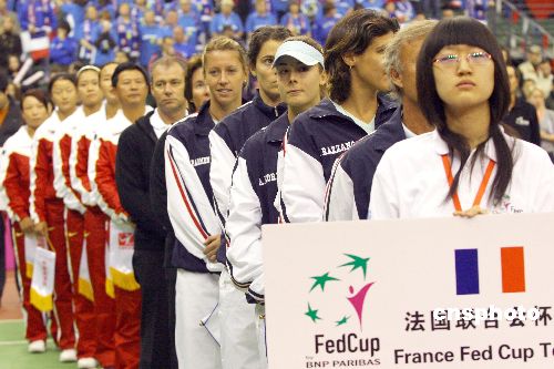 2月2日,2008聯(lián)合會(huì)杯網(wǎng)球賽世界組中國對法國的比賽在北京國際網(wǎng)球中心開幕。中新社發(fā) 富田 攝