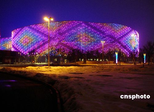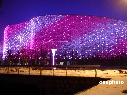 2008年2月6日晚,被稱為蘇州“鳥巢”的蘇州科技文化藝術中心璀璨奪目,變幻多姿的燈飾絢麗迷人,營造出濃厚的節(jié)日氣氛。中新社發(fā) 王建康 攝