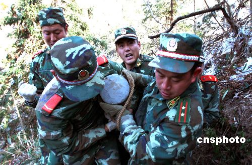 2月13日(農(nóng)歷年初七),麗水市武警支隊(duì)官兵在搬運(yùn)水泥電線桿。浙江麗水市云和縣安溪畬族鄉(xiāng)東岱村在海拔700米以上,在今年遭遇的雪災(zāi)中,電力線路中斷了20余天。當(dāng)天麗水市武警支隊(duì)60多名官兵經(jīng)過3天奮戰(zhàn),在冰雪地搬運(yùn)了36根水泥電線桿,幫助電力職工搶修線路。中新社發(fā) 歷記攝 攝