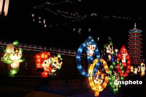 2月20日,北京龍慶峽第二十二屆冰燈藝術節(jié)上,眾多花燈冰燈藝術作品以北京奧運為主題。正月十五元宵節(jié)是新的一年中第一個月圓之夜,是春節(jié)之后中國國獨具特色的一個傳統(tǒng)節(jié)日。中新社發(fā) 楊可佳 攝