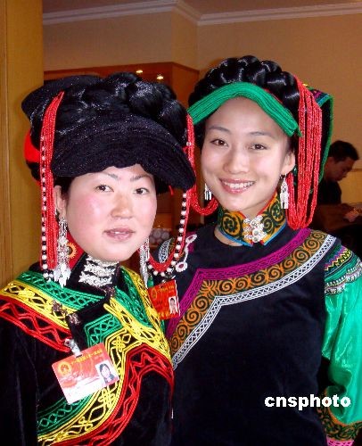 中國的全國人大代表日趨年輕化,來自四川的全國人大代表毛金芳、張蓓蓓(右)首次成為“80后”代表,即所謂出生于1980年以后的“獨生子女”新生代青年。毛金芳1980年12月出生,是雅安市石棉縣安順鄉(xiāng)鹿子坪村婦女主任。張蓓蓓1982年4月出生,為涼山州歌舞團三級舞蹈演員。中新社發(fā) 黃翔 攝