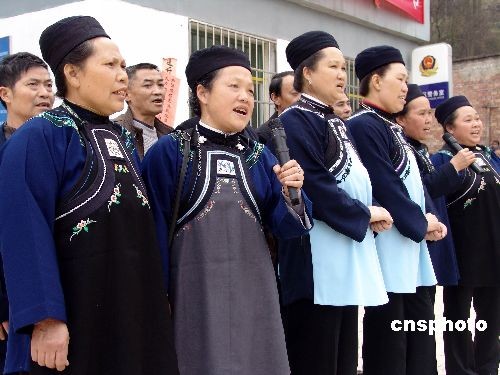 圖:苗族布依族同胞銀杏樹下展歌喉