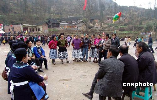 3月12日,貴州省清鎮(zhèn)市麥格苗族布依族鄉(xiāng)一年一度的 “銀杏歌節(jié)”在麥格村場壩上舉行。萬余名身著盛裝的苗族、布依族同胞用甜美的歌聲、歡快的舞蹈歡慶節(jié)日。中新社發(fā) 申時進 攝