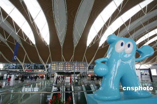 3月26日,上海浦東國(guó)際機(jī)場(chǎng)2號(hào)航站樓(T2)正式投入運(yùn)營(yíng)。首批15家國(guó)內(nèi)外航空公司從即日起開始在T2迎來(lái)送往。新建的2號(hào)航站樓總建筑面積54.6萬(wàn)平方米,近2倍于1號(hào)航站樓。浦東機(jī)場(chǎng)以此進(jìn)入了2座航站樓、3條跑道同時(shí)運(yùn)營(yíng)的新時(shí)代。預(yù)計(jì)到2010年,上海的機(jī)場(chǎng)吞吐客流量將達(dá)到近9000萬(wàn)人次,其中虹橋機(jī)場(chǎng)承擔(dān)3000萬(wàn)人次,浦東機(jī)場(chǎng)承擔(dān)近6000萬(wàn)人次。中新社發(fā) 湯彥俊 攝