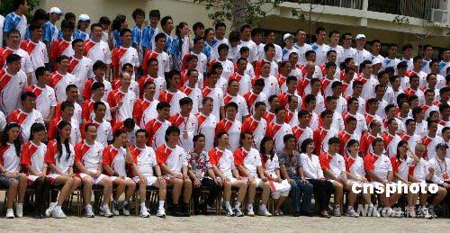 北京奧運(yùn)圣火即將進(jìn)入海南三亞開始內(nèi)地傳遞。5月3日,將在三亞進(jìn)行圣火傳遞的二百多名火炬手聚集一堂舉行火炬手大會(huì),會(huì)后一起合影留念。中新社發(fā) 周兆軍 攝