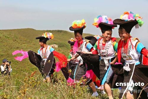 5月11日,是貴陽市苗族同胞農(nóng)歷“四月八”的傳統(tǒng)節(jié)日。貴陽市數(shù)千苗族同胞身著節(jié)日盛裝,聚集在貴陽市花溪區(qū)高坡鄉(xiāng)云頂村草場載歌載舞,歡慶一年一度的苗族節(jié)日。小伙子們吹起歡快的蘆笙,姑娘們跳起苗族的花綢舞,盡情的對歌談心,祈求今年風調(diào)雨順,五谷豐登。中新社發(fā) 彭年 攝