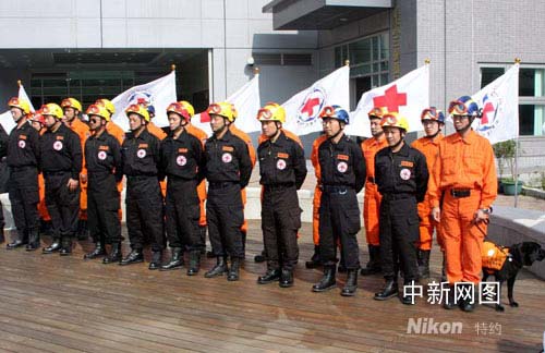 圖:戎裝即發(fā)的臺灣紅十字組織搜救隊