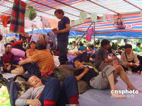 圖:綿陽地震災(zāi)民安置點(diǎn)災(zāi)民情緒穩(wěn)定