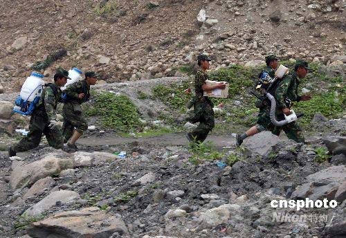 圖:解放軍防疫部隊(duì)緊急進(jìn)入汶川重災(zāi)區(qū)