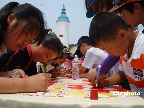 5月20日,“六一”兒童節(jié)前,眾多長(zhǎng)沙小朋友在長(zhǎng)沙世界之窗心愿板上畫上紅心,寫下祝福,共同為災(zāi)區(qū)人們祈禱!霸笧(zāi)區(qū)小朋友早日回家”成為孩子們兒童節(jié)前送給災(zāi)區(qū)同齡人的最大心愿。