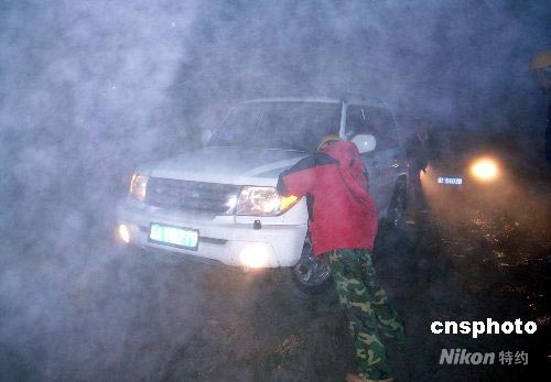 從5月21日晚至22日凌晨,中新社記者通過四川省雅安市的S210省際公路前往臥龍,海拔4000多米的夾金山頂峰被進(jìn)出汶川地震重災(zāi)區(qū)的大型貨車、救護(hù)車、轉(zhuǎn)移災(zāi)民車等運輸車輛堵塞,采訪車多次深陷泥濘之中。由于目前通往汶川地震災(zāi)區(qū)的被毀公路在修復(fù)后極為脆弱,因此這條過去不起眼的公路成為連結(jié)成都與汶川的生命線。中新社發(fā) 任晨鳴 攝