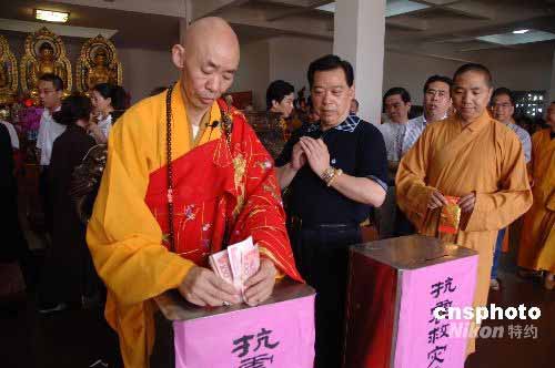圖:福州佛教僧眾為地震災(zāi)區(qū)同胞捐款祈福