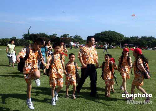 圖:首批九名四川災區(qū)兒童愛心海南游