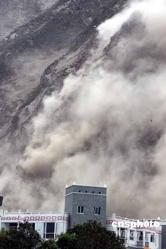 5月25日,四川汶川又發(fā)生余震,山體出現(xiàn)滑坡。中新社發(fā) 張雷 攝