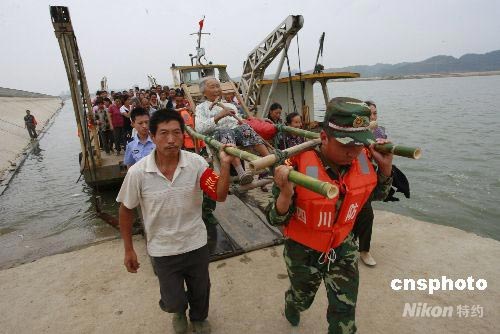5月30日,四川省遂寧市武警支隊(duì)?wèi)?zhàn)士幫助轉(zhuǎn)移船山區(qū)小河洲群眾。當(dāng)天下午,船山區(qū)政府緊張有序組織小河洲村民緊急撤離預(yù)演。由于涪江支流湔江上游唐家山堰塞湖面臨潰堤危險(xiǎn),處于涪江中游的該市各級(jí)各部門及時(shí)啟動(dòng)應(yīng)急預(yù)案,并開展有序的撤離預(yù)演,確保唐家山堰塞湖潰堤遂寧市零傷亡。中新社發(fā) 鐘 敏 攝