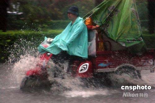 7月22日,安徽省亳州市突遭暴雨襲擊,造成市區(qū)許多地方積水嚴(yán)重,氣象部門于中午12時(shí)10分發(fā)布暴雨紅色預(yù)警信號。強(qiáng)降雨雖然驅(qū)走了些許悶熱,但卻使市區(qū)不少路面出現(xiàn)積水,給行人帶來很大困難。中新社發(fā) 張延林 攝