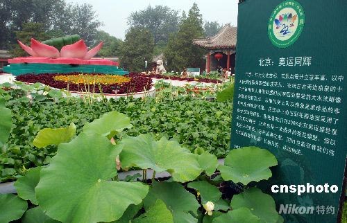 7月24日,兩名女孩在圓明園遺址公園內(nèi)的荷花旁邊留影。奧運臨近,在圓明園第二十二屆喜迎綠色奧運荷花節(jié)期間,絢麗多姿的各類荷花品種達(dá)260多個品種,令前來游園的中外游客流連忘返。 中新社發(fā) 楊慧峰 攝