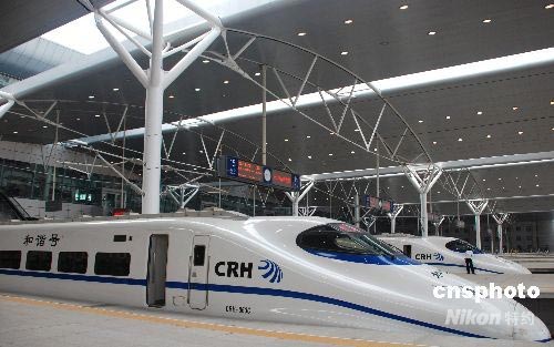 京津城際列車(chē)將于8月1日投入運(yùn)營(yíng),國(guó)產(chǎn)“和諧號(hào)”列車(chē)將以每小時(shí)350公里的速度行駛在兩座城市之間。該車(chē)分為一等車(chē)廂和二等車(chē)廂,價(jià)格分別是69元和58元。單程行使時(shí)間僅為29分鐘。中新社發(fā) Eddie Zhang 攝