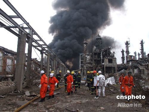 8月26日6時許,廣西宜州市郊的廣西維尼綸集團有限責任公司車間發(fā)生爆炸并引發(fā)大火,截至當日15時30分,醫(yī)院收治傷員增加至55人,死亡人數增至5人,失去聯系人員減至14人。 中新社發(fā) 楊繼武 攝