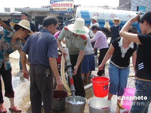 圖:消防官兵為廣西柳城縣數(shù)萬民眾送水