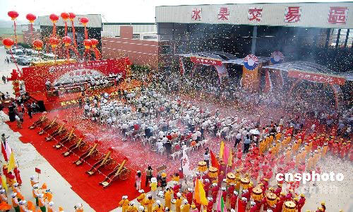 九月六日,首屆海峽兩岸農(nóng)產(chǎn)品采購訂貨會在福建南安閩臺農(nóng)產(chǎn)品市場舉行,來自兩岸農(nóng)產(chǎn)品經(jīng)銷商、采購商、企業(yè)家共三千多人出席。訂貨會設(shè)四百個標(biāo)準(zhǔn)展位,其中臺灣農(nóng)業(yè)主題館占一百一十七個。來自臺灣的一百多家企業(yè)集中展示蔬果、水產(chǎn)、肉類等臺灣農(nóng)業(yè)產(chǎn)品。當(dāng)天,兩岸客商共簽訂農(nóng)業(yè)合作項目及購銷總金額十九點六億元人民幣。圖為展銷會四百展柜無虛席。中新社發(fā) 傅丹丹 攝