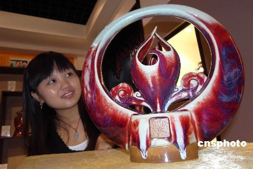 為慶祝第二十四個教師節(jié),表達對教師的感謝和敬意,河南禹州榮昌鈞瓷坊精心燒制出鈞瓷作品《師恩瓶》,作品由抽象的牛首和燃燒的蠟燭造型構成,以孺子牛與蠟燭象征教師的奉獻精神和高尚情操。中新社發(fā) 牛書培 攝