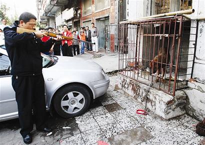 12日下午,武漢硚口區(qū)崇仁路一理發(fā)店老板圈養(yǎng)的一條藏獒,逃出鐵籠咬傷3人。因擔(dān)心該藏獒再次逃出傷人,民警開(kāi)槍將其擊斃。