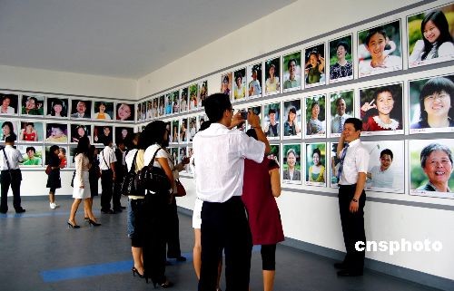 10月24日,在第六屆全國農(nóng)民運動會開幕之際,燦爛泉州2008大型攝影展在福建泉州海峽體育中心開展。采自泉州地區(qū)各行各業(yè)人群的2008張“笑臉”圖片,在環(huán)海峽體育中心主體育館二樓進(jìn)行展示,成為福建最大的“笑臉墻”。中新社發(fā) 傅丹丹 攝