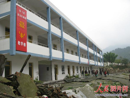 2008年10月,一批來自成都市的游客正在“5·12”汶川大地震“最!苯虒W樓地震遺跡內(nèi)參觀。據(jù)悉,“5·12”汶川大地震發(fā)生后,一條地震斷裂帶剛好從四川省彭州市白鹿鎮(zhèn)中心校校區(qū)內(nèi)穿過,從而導致一棟新建教學樓被整體抬高近3米,樓體依然屹立原地不倒;而在其旁邊的教師宿舍完全垮塌,舊教學樓、辦公樓均成危房,與“長高”的新教學樓相對10多米遠、且在同一時間施工建設、同一地面高度的一棟四層新教學樓,成了鮮明的參照物。會“長高”的教學樓便被當?shù)厝朔Q作是:“5.12”汶川特大地震“最!钡慕虒W樓。彭州市相關部門特將此校教學樓地震遺跡作為旅游資源開發(fā)利用。目前,每天都有二三百人的游客來此觀光“最!钡慕虒W樓地震遺跡。