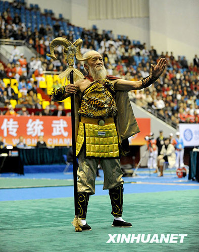 10月31日,88歲的劉子均在表演奇門兵器——羊角骶。當(dāng)日,正在湖北省十堰市舉行的第三屆世界傳統(tǒng)武術(shù)節(jié)開始武術(shù)比賽。來(lái)自中國(guó)武術(shù)協(xié)會(huì)代表隊(duì)88歲的劉子均習(xí)武70多年,他在比賽中表演的羊角骶藝驚四座。新華社記者余國(guó)慶攝