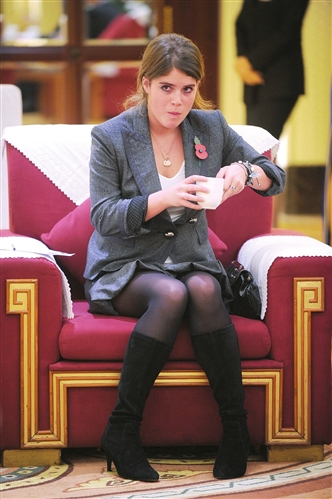 引人矚目的是,隨同安德魯王子 一同出訪的還有他的二女兒——尤金妮亞公主。由于這是第一次出國訪問,也是第一次以英國王室成員的身份亮相公眾,年輕的尤金妮亞公主很注意形象:特意穿了一身深灰色的職業(yè)套裝,黑色絲襪,黑色高跟鞋,隨身攜帶黑色手提包,舉止十分端莊,七分袖和喇叭裙擺的設(shè)計凸顯了公主的活潑美麗。在媒體鏡頭前,今年剛滿18歲的尤金妮亞公主顯得稍微有些局促,不時露出靦腆的笑臉。細(xì)品川茶時,輕輕抿一口,一不小心灑些茶水出來,她還飛快看一眼鏡頭,偷偷一笑,很是俏皮可愛。