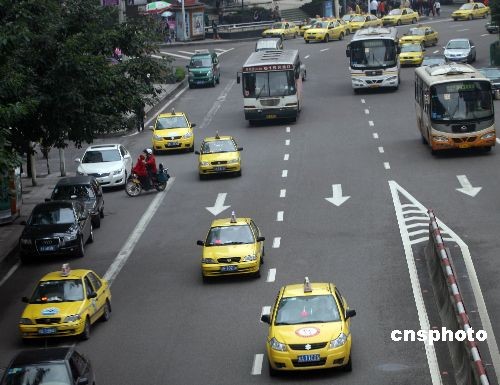 十一月五日,在重慶市菜園壩火車站附近的的士候車站,?恐簧俪鲎廛嚨却忻癯俗。三日清晨,重慶主城部分出租車因受阻不能正常營(yíng)運(yùn),給當(dāng)?shù)厝罕姵鲂性斐刹恍±щy。當(dāng)?shù)卣谌兆龀鼍o急部署,采取多項(xiàng)有力措施,積極解決出租車停運(yùn)事件。目前,重慶主城區(qū)八千余輛出租車已全面恢復(fù)營(yíng)運(yùn)。