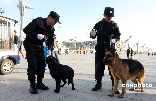 11月6日,一輛帶著警犬籠的警用電瓶車在“鳥巢”巡邏。近日,一支由“警犬電瓶車”、警用電動(dòng)自行車組成的“車輪上的巡警隊(duì)”出現(xiàn)在北京奧運(yùn)中心區(qū)里。而民警在巡邏中一般不攜帶警用匕首和手槍,這在全國巡警隊(duì)伍中也是少見的。如有游客因急事求助,民警駕駛的巡邏車可招手即停。 中新社發(fā) 吳芒子 攝