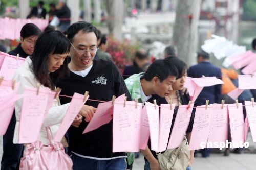 11月10日,還有1天就是光棍節(jié)了,福州西湖公園湖濱晨曦廣場舉辦的免費(fèi)征婚活動(dòng)吸引眾多單身男女和單身男女的父母匯聚在此尋覓或幫助尋覓意中人。中新社發(fā) 楊婀娜