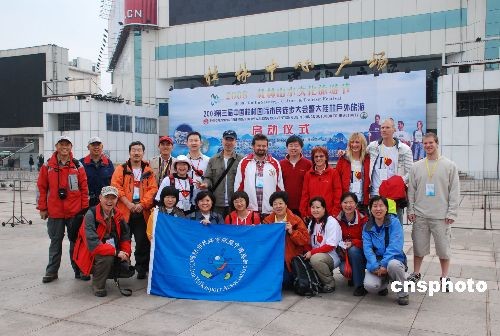 11月15日,由國(guó)際市民體育聯(lián)盟中國(guó)總部主辦的“二00八第三屆中國(guó)(桂林)國(guó)際市民徒步大會(huì)暨大桂林戶外旅游”在國(guó)際旅游名城廣西桂林市舉行,國(guó)際市民體育聯(lián)盟(IVV)奧地利主席羅伯特沃爾茲以及來(lái)自中國(guó)、美國(guó)、英國(guó)、瑞士、瑞典、德國(guó)等IVV成員國(guó)徒步愛好者參加了啟動(dòng)儀式。中新社發(fā) 周利朔 攝
