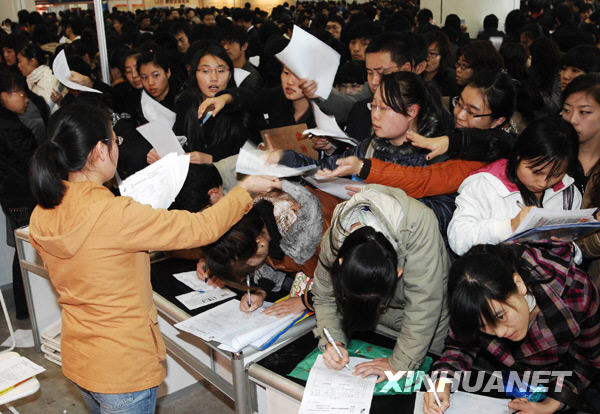 11月15日,中國·大連2008大中專畢業(yè)生暨秋季人才招聘大會在大連世界博覽廣場舉行。來自大連、北京、深圳等城市的100余家單位提供就業(yè)崗位4263個,吸引數(shù)萬名大中專畢業(yè)生到場應(yīng)聘。新華社發(fā)