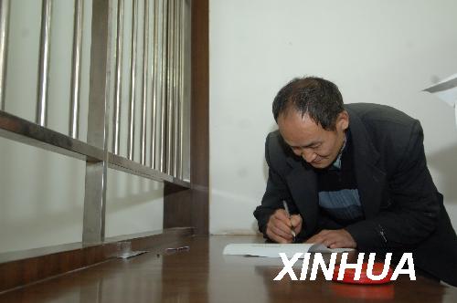 11月18日,周正龍在旬陽縣看守所辦理相關(guān)手續(xù)。周正龍在11月17日晚22時30分二審法院改判緩刑后,于18日上午11時許,在旬陽縣看守所辦理完相關(guān)手續(xù)后,離開看守所回家。新華社記者丁海濤攝