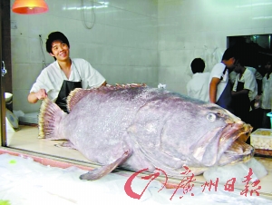 圖:東莞身長2.12米"石斑魚王"下油鍋