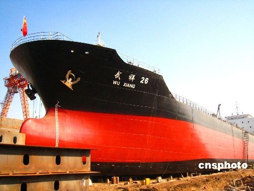 11月20日,一艘由中國(guó)農(nóng)民制造的最大貨船,屹立在南京浦口“十里造船帶”的造船廠碼頭準(zhǔn)備下水。這艘由“中華民間造船水運(yùn)第一村”南京武家嘴村農(nóng)民制造的貨船載重1.6萬(wàn)噸、長(zhǎng)146.2米、寬22米、進(jìn)深11米,是迄今全國(guó)農(nóng)民中造出的最大貨船。中新社發(fā) 谷昌旺 攝