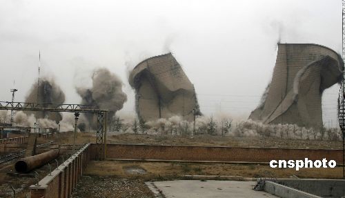 圖:天津成功爆破拆除四座冷卻水塔