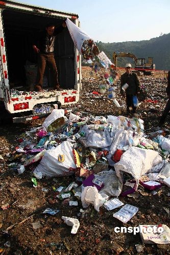 11月26日,浙江州一民企藥店在溫嶺生活垃圾處理場公開銷毀價值5萬多元的過期藥品,這是該公司今年第二次銷毀過期藥品。自三鹿奶粉中發(fā)現三聚氰胺事件后,食品安全越來越受到人們的關注和重視,作為臺州境內較有影響的藥品銷售企業(yè),該藥店自覺嚴格按照《藥品管理法》的要求,分類整理庫存藥品,最近共整理出感冒藥、抗菌藥等過期藥品500多公斤,總價值5萬多元。中新社發(fā) 劉振清 攝