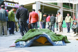 2日下午1時(shí)許,一工人的尸體被棉被蓋住擺在工地一旁。當(dāng)天上午,一河南開封籍工人在海淀區(qū)復(fù)興路某工地12層樓外作業(yè)時(shí),不慎墜下身亡。事發(fā)后,警方及建設(shè)安全監(jiān)管人員到場調(diào)查,死者堂弟費(fèi)先生阻止尸體被抬離欲討說法。17時(shí)許,尸體仍停放在工地門口。堂弟稱經(jīng)與工地方協(xié)商,事情將按規(guī)定程序處理,正等死者直系親屬到達(dá)。記者 王嘉寧